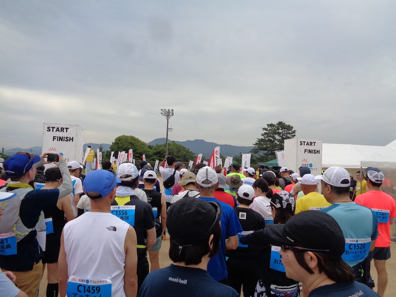 ダブルフルは午前6時スタートで既にスタート、シングルフルが午前8時半スタート、棚田ウオーク30キロが午前9時スタート。コースは一見すると島に見える、油谷湾を囲む半島をダブルは一周し、シングルとウオークは半周し、観光スポットを巡るようになっていました。制限時間はシングルフルが8時間、ウオークが10時間。昨年はマラソンの関門時間をよく調べたおらず、34.2キロ地点のエイドステーションを6時間20分までにスタートしないといけないのを知らず、ゆっくり食べていらた、門限に引っかかり、失格となってしまいました。