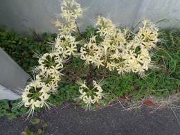 例年、クリニックの駐車場の一角に植えた白い彼岸花が、今年は9月23日(火)秋分の日(彼岸)の頃に咲きますが、今年は1週間遅く9月30日(火)に満開に咲きました。