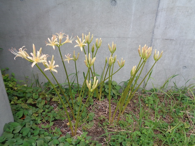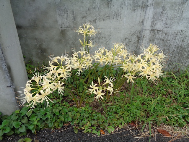 例年、クリニックの駐車場の一角に植えた白い彼岸花が、今年は9月23日(火)秋分の日(彼岸)の頃に咲きますが、今年は1週間遅く9月30日(火)に満開に咲きました。