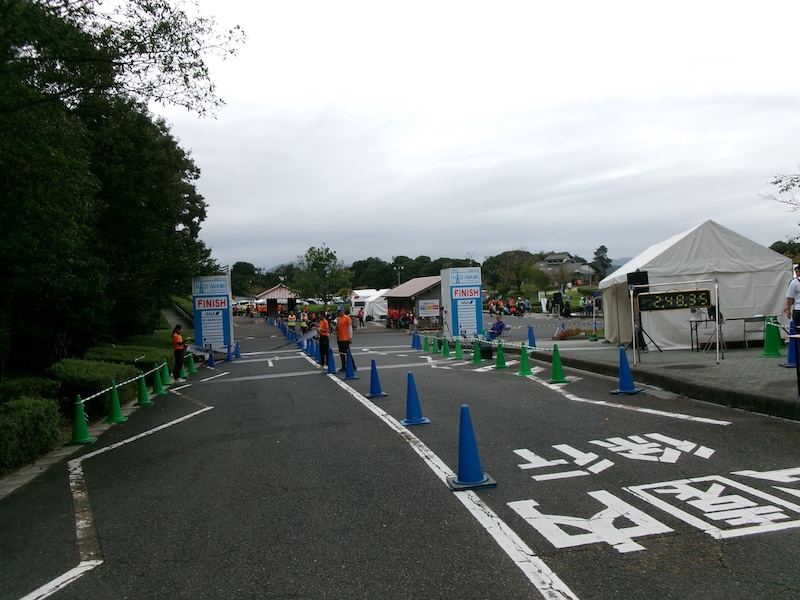 スタート地点を50秒で通過、最初の1.3キロは下りが続き、最初の1キロが6分、その後上りが始まり、2キロ目が7分35秒、それから空港に向かって上り坂が続き、空港内は滑走路内は行きは向かい風が強く、フラットなのにキロ8分を超えていました。途中の関門をぎりぎり数分前に通過するペースで進み、最後の1.5キロが上りが続き、結局ガンタイムで2時間48分45秒でゴール。日頃キロ9〜10分のゆっくりしたペースで走っていたのが、やはり一人で走るよりは、競走しているわけではないですが、ペースが早くなっていました。