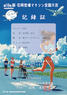 第18回萩・石見空港マラソン全国大会が10月19日(日)に島根県益田市で開催され、クリニックから1名がハーフに、1名が応援で参加しました。滑走路を走る珍しい大会です。