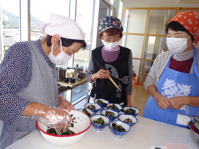 「くるみ味噌ダレが美味しい」と嬉しいお言葉をいただきました。この献立は麦みそのため甘めのタレになりますが、味噌によって味が異なってくるそうです。松村栄養士から「味噌を使った料理は各ご家庭の味が出やすいものだと思うので、普段使っている味噌でも挑戦してみてほしい」とありました。