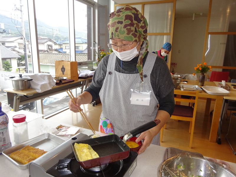 今回は生魚を扱うので、調理の前には木村栄養士から食中毒についての説明もあり、特に注意して、手袋をつけたり、こまめに手を洗ったりしながら調理しました。盛り付けも細やかな作業が多かったのですが、みなさんのおかげでスムーズに作り終えることができました。