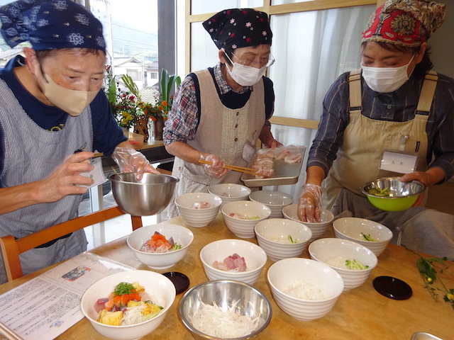 令和7年10月27日(月)の調理実習は「海鮮どんぶりお茶漬け」を作りました。参加者は5名でした。