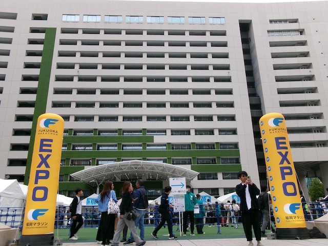 午前中の診療をして、柳井駅午後1時17分発のJRの在来線と新幹線を利用し、午後3時博多駅に到着しました。地下鉄で天神まで行き、市役所で受付をして、ゼッケン、測定チップをもらいました。昨年と同じ、今回も会場から歩いて5分ほどのところにあるコンフォートインを予約しており、チェックイン。