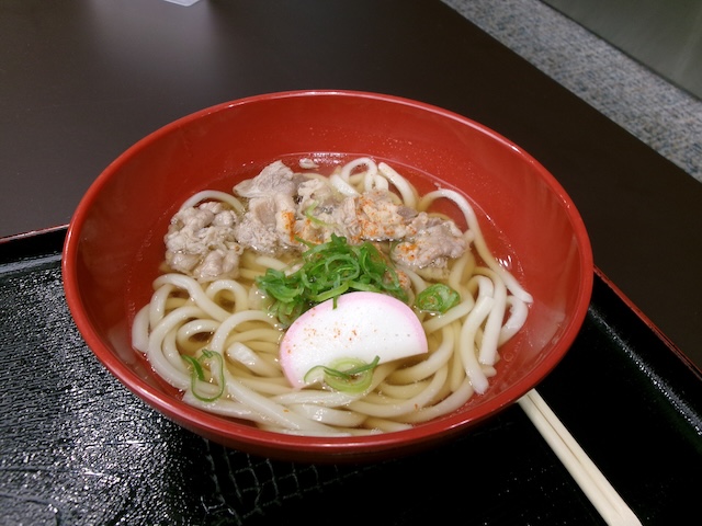 お腹が空いたので、飛行機で夕食が出るのはわかっていましたが、肉うどんを食べました。