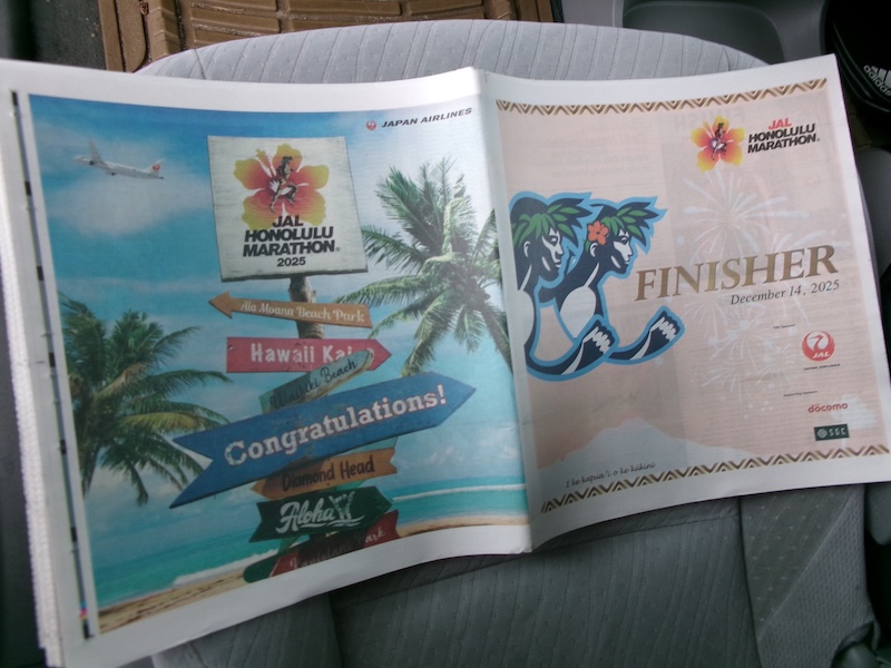 12月15日(月)完走証jは郵送に変更になり、参加者の記録の載ったタブロイドをカピオラニ公園に取りに行きました。