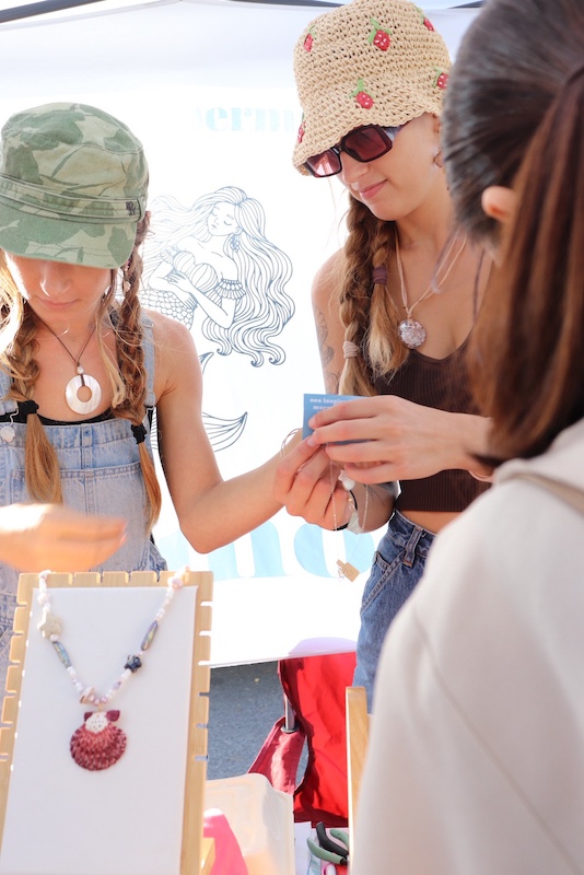 カカアコ・ファーマーズマーケットでは、ひとつ記念にアクセサリーを買おうと決めていました。こういったマーケットで、作った人と話しながらハンドメイドの物を見るのが元々好きなので、何店舗か巡って、一番雰囲気の良かった『half-moon』というお店に決めました。流暢に…とまではいきませんが、言語の壁を越えて楽しめました。