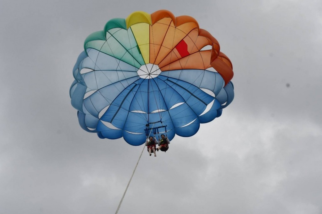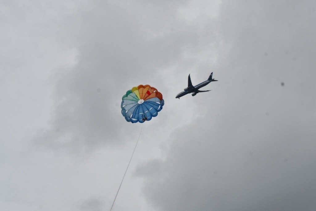パラセーリング、誘われて挑戦してみました。高いところは苦手だが、やったことがなかったので以外に楽しめそうだと思って挑戦してみましたが…紐をギュッと必死に握りしめて、チラッと景色(遠くにダイヤモンドヘッド)は見れたものの恐怖でしかなかった(T_T)次の日には腕が筋肉痛。でも、一度は体験してみないと。