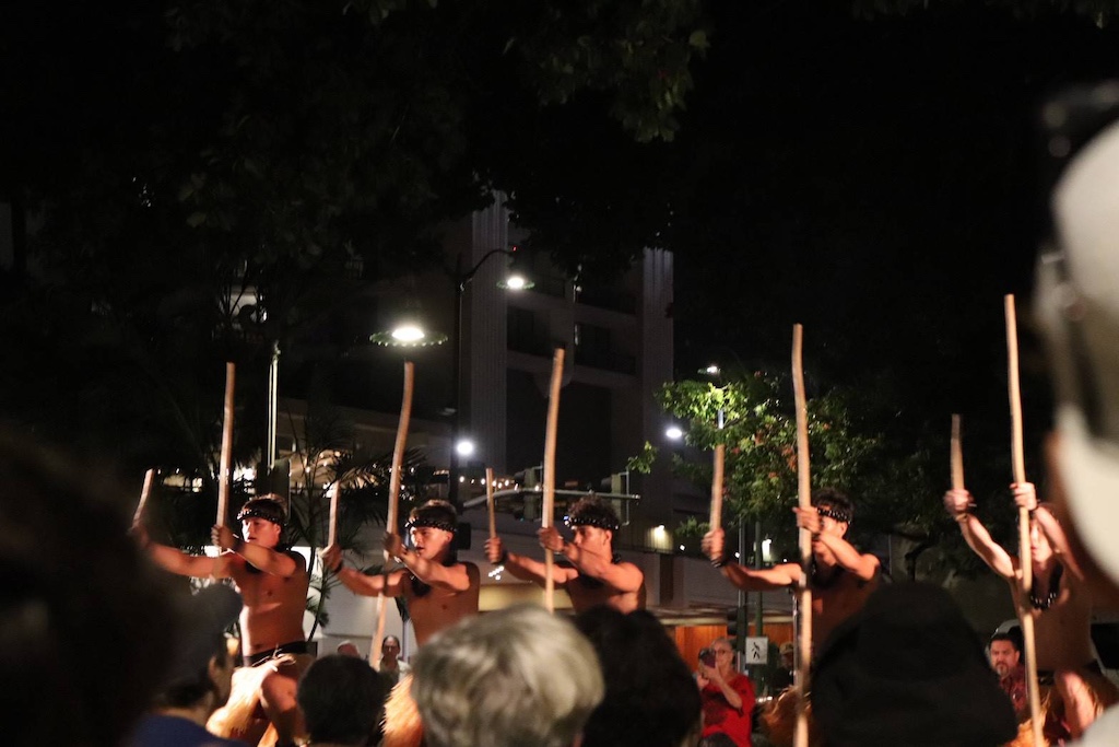 懇親会が終わってから、武永さんと松村さんとワイキキの浜辺にフラダンスを見に行きました。カヒコの踊りから始まり、4曲目までは見られたのですが、雷が鳴り、すぐに帰ることになりました。大好きなフラダンスを見るのは、とても有意義な時間でした。二人には感謝です。