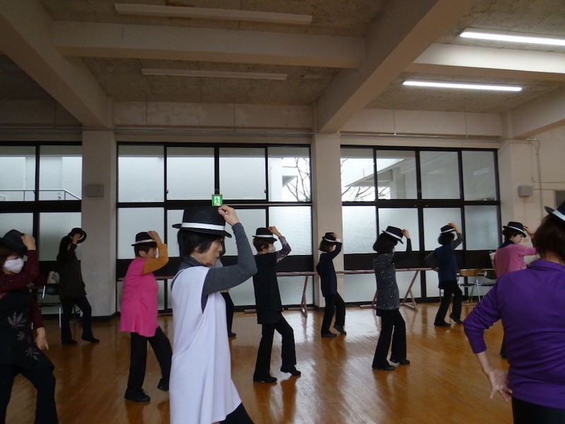 創作ダンスは、年に2~3曲、曲に合わせてダンスを習います。曲は「川の流れのように」「桜」などの歌謡曲や「ダンシングクイーン」などの洋曲、「君をのせて」などのアニメの曲など様々です。今回芸能祭の曲も「ザ・ウィナー」「君をのせて」とアニメの曲でした。