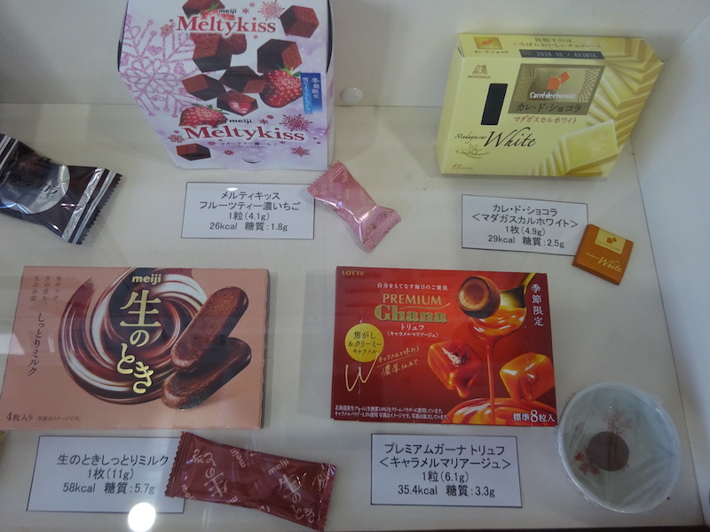 今月はチョコレートのカロリーと糖質を展示しています。