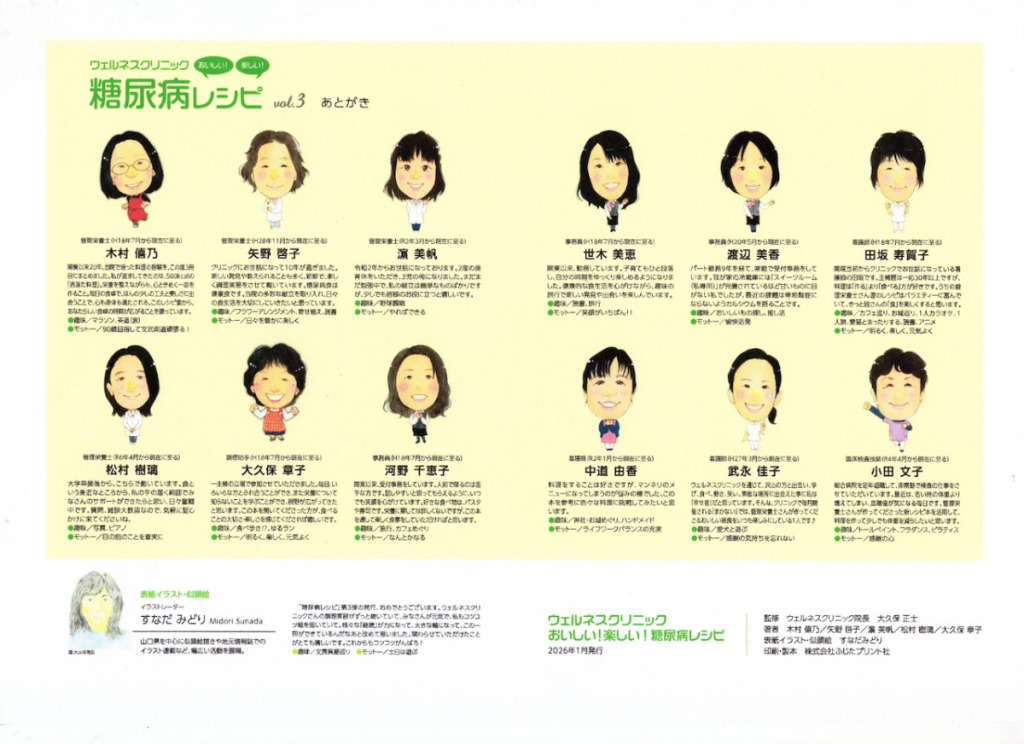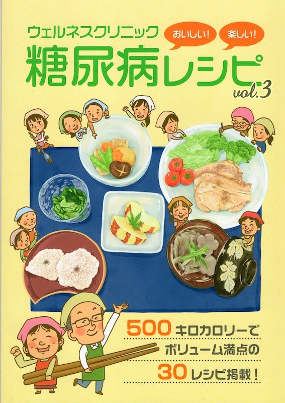 平成24年11月に、初めの30回分の献立をレシピ集として、平成30年4月にvol.2として、製本化しました。今回、平成29年10月から令和5年2月までの30回分の献立を「糖尿病レシピ、volume3」として製本化することになりました。今回も楽しい雰囲気が感じていただければと思い、調理中のスナップ写真を加えました。