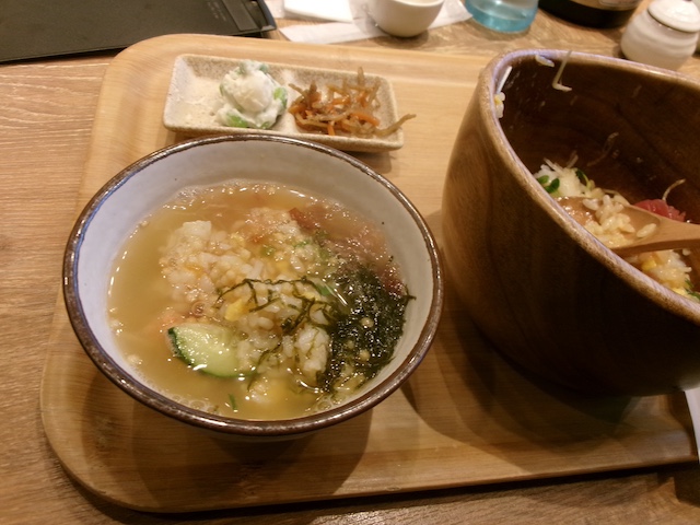 だし汁を入れてお茶漬けに