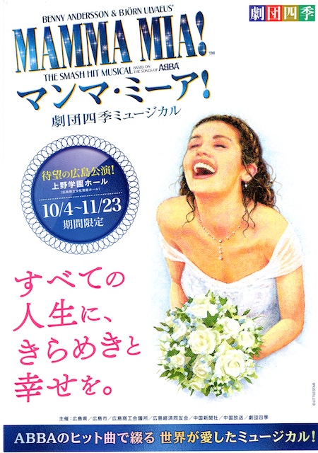 新聞に、劇団四季の「マンマミーア」が10月4日から11月23日まで広島市の上野学園ホールで開催される記事があり、当院の糖尿病患者会「アロハ」の秋の日帰りバス旅行の候補として、劇団四季の事務所に連絡し、11月15日(日)午後1時から開演に団体として仮予約をしました。そのため会場の下見と当日の昼食として会場の地下にあるレストランに予約をするため、行ってみることにしました。