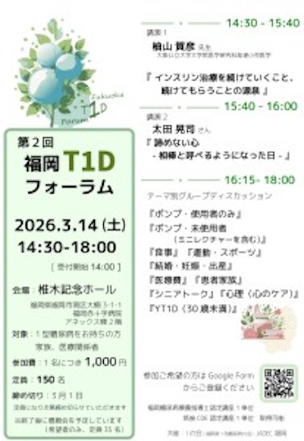 令和8年3月14日(土)福岡赤十字病院で開催された「第2回福岡T1Dフォーラム」に昨年に続き参加しました。