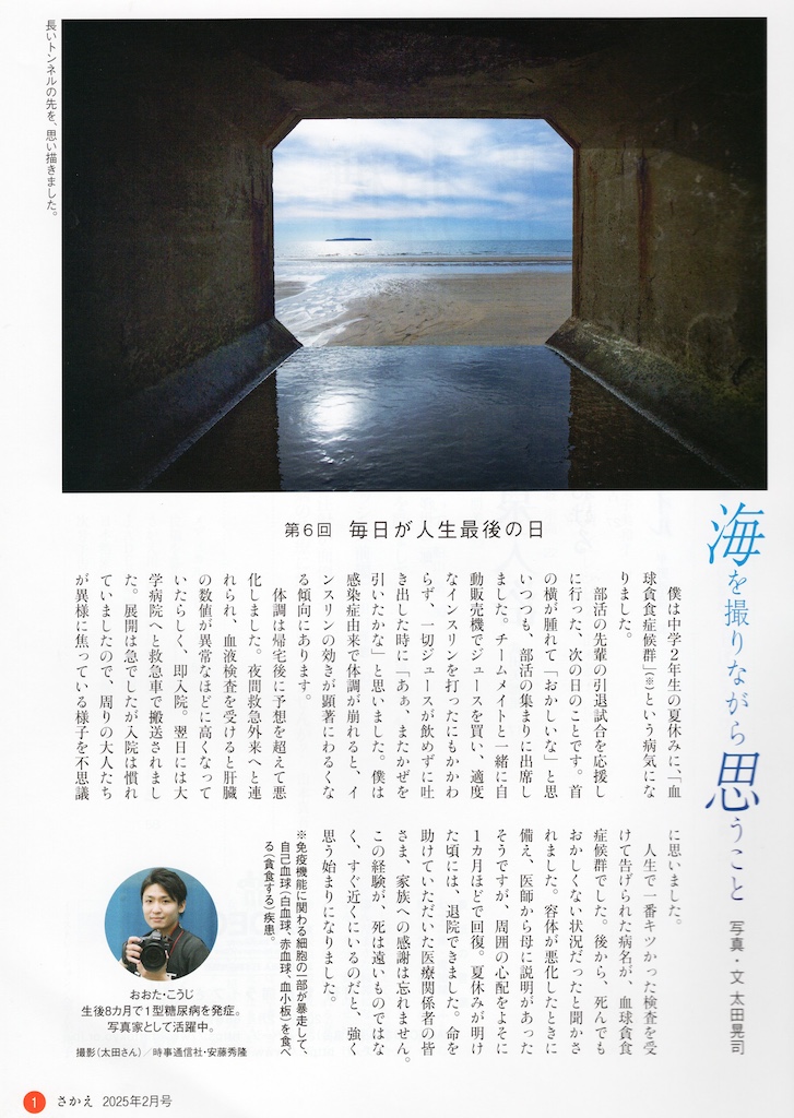 講演2題目(15:40〜16:00)は写真家で「さかえ」の最初のページに海の写真と文書を投稿されている太田 晃司さんによる「諦めない心〜相棒と呼べるようになった日」と題して、物心がつく前の生後8ヶ月で1型糖尿病を発症し、自身のこれまでの学校生活での出来事や糖尿病との付き合いについて、どのように感じ、対応してきてたかなどの話がありました。最後にお母様からのビデオメッセージの動画もあり、20分の短い時間でしたが、心に響く話を聴くことができました。