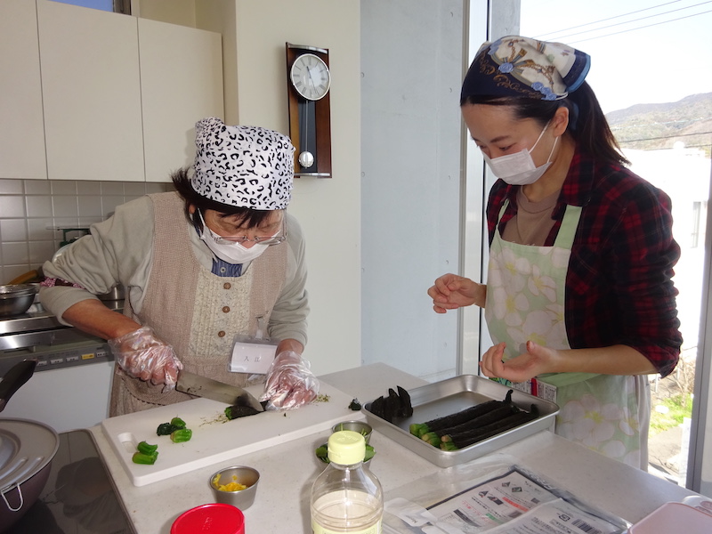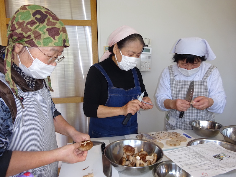 その後、献立説明がありそれぞれ担当を決めて10時半過ぎから調理が始まりました。