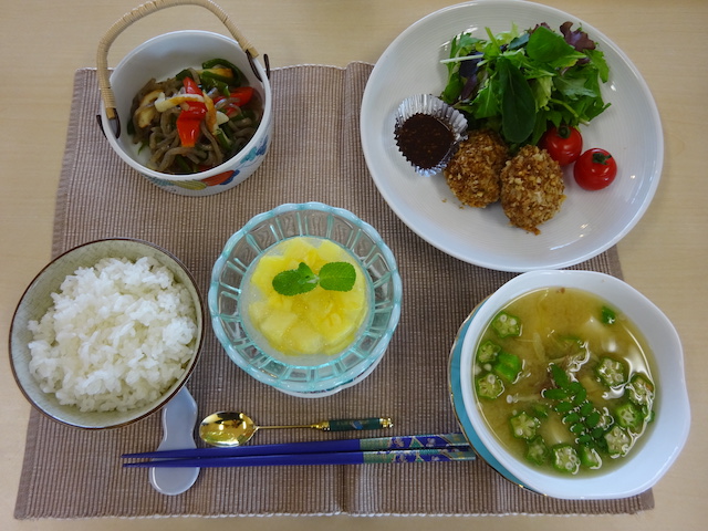 今回のまかないは、7、8月の調理実習の試作で”ヘルシーメンチカツ”にしました。