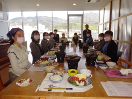 平成26年3月より月2回「まかない」を始めました。NHKの「サラメシ」を真似て「クリメシ」と名付けました。令和7年11月20日(木)は「山菜弁当」で12名が参加しました。3分間スピーチは渡辺事務員。